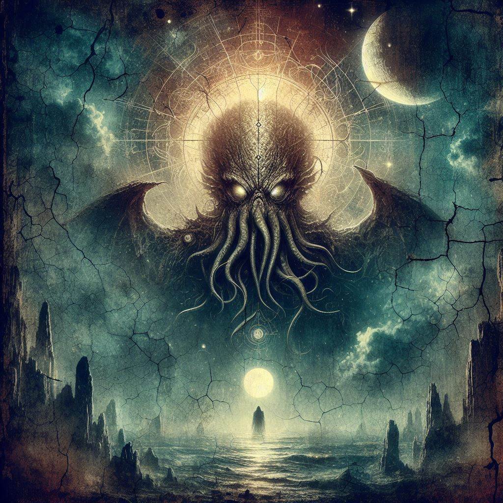 From the depths of the ocean’s darkest abyss, Cthulhu rises, an ancient entity whose very presence bends reality into surrealist forms. As its colossal form emerges beneath a blood-red sky, the air vibrates with eldritch energy, igniting a frenzy of creative chaos. With tendrils coiling like living brushes, Cthulhu crafts monstrous yet mesmerizing murals upon the shattered earth, blending cosmic hues and forbidden geometries. Its art defies mortal comprehension, speaking to primal fears and awe, leaving those who behold it entranced, inspired, or driven mad. The godlike artist of the void reshapes the world into its canvas, merging terror and beauty in a single, eternal masterpiece.